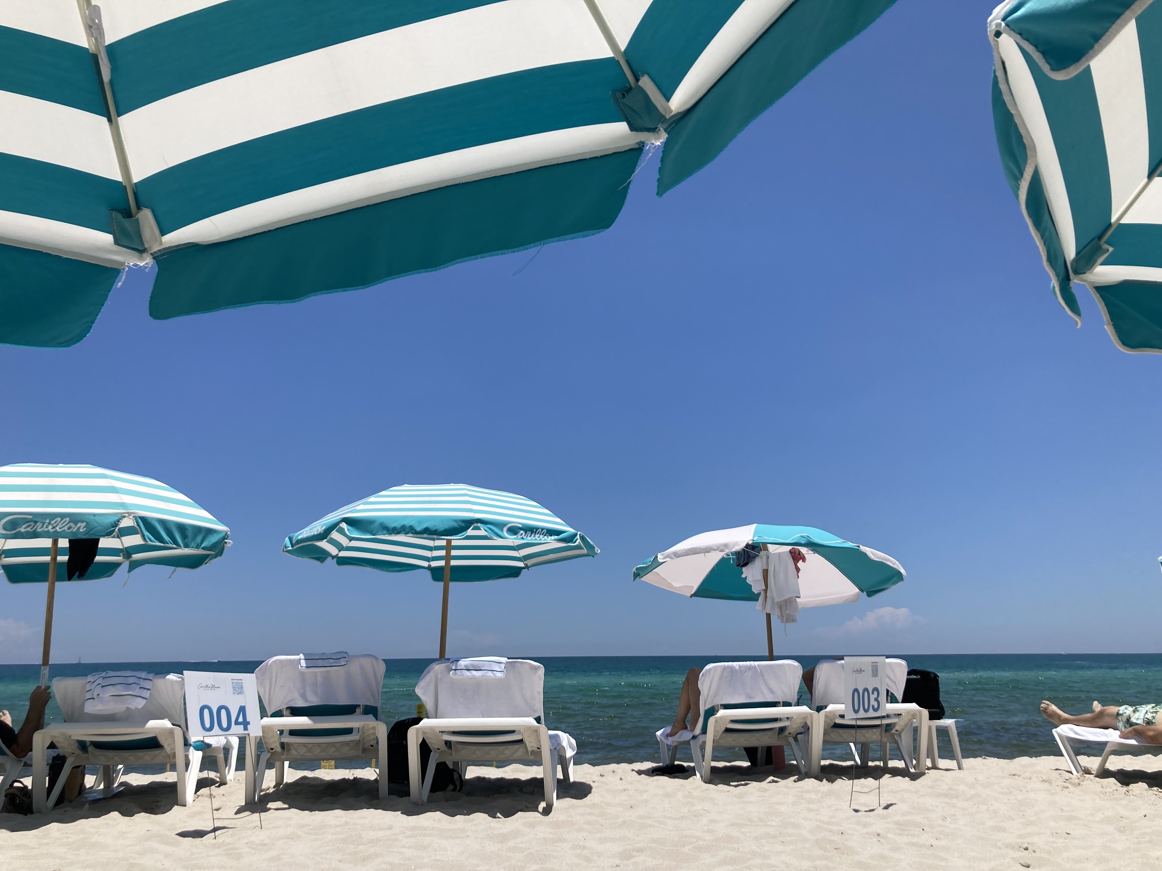 By early afternoon, I’m ready for a change of scenery. I slip into my swimsuit and head down to the beach. The transition feels natural rather than jarring, the sauna having prepared me for the hot Miami air. I spend the rest of the afternoon reading and lounging beneath a baby blue umbrella, taking breaks only to cool off and watch the waves. Instead of heading back in to dine, I order crispy chicken tenders and fries delivered directly to my beach chair. Eventually, I wander back to the spa for one last thermal circuit, choosing the laconium to end the day gently. As closing time approaches, I reluctantly leave the warmth of the vitality tub and step into the showers.